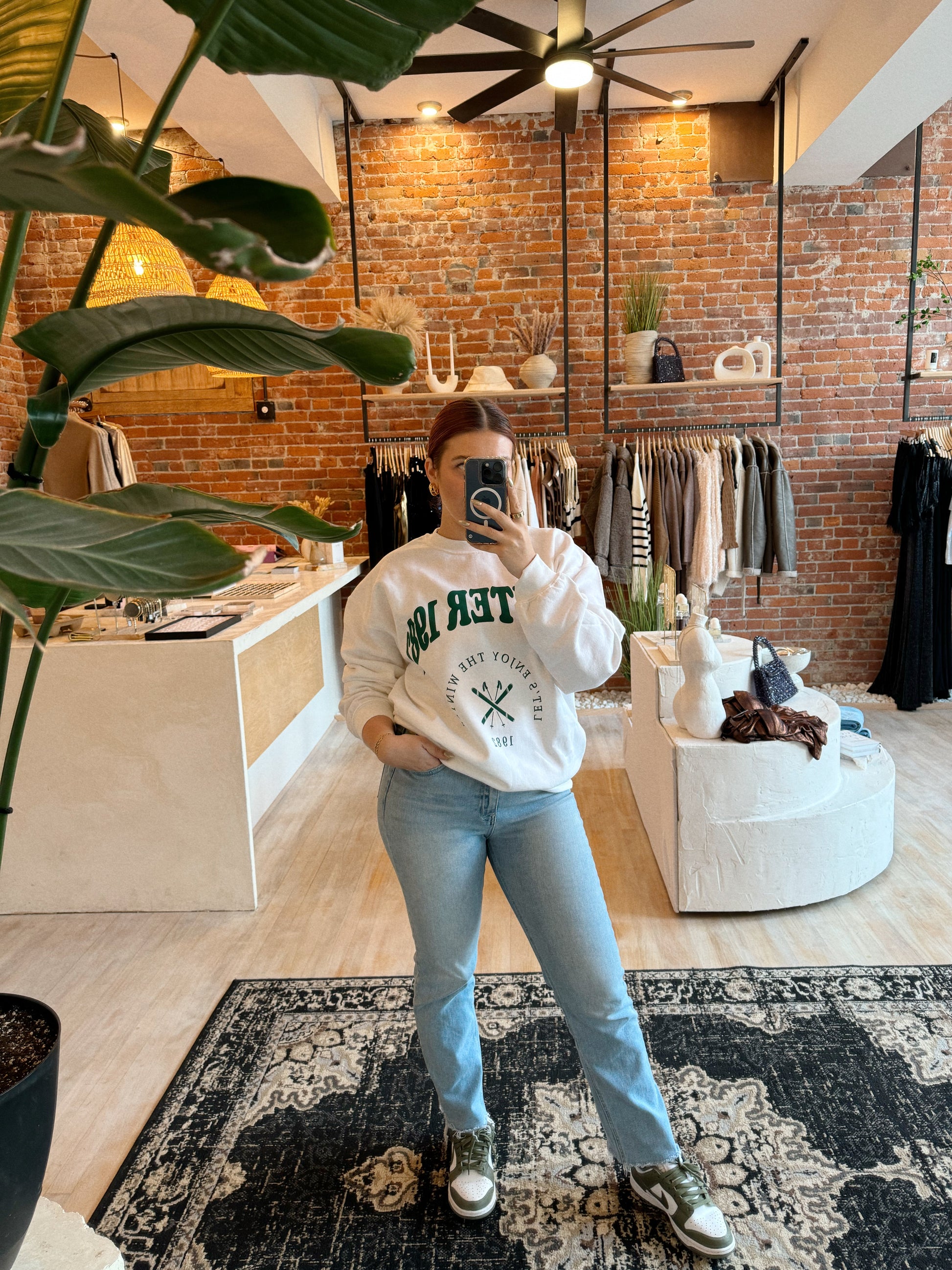 Another comfy sweatshirt? Music to my ears! Introducing Winter 1982 in White! Throw on a pair of leggings and white sneakers for an on-the-go look!